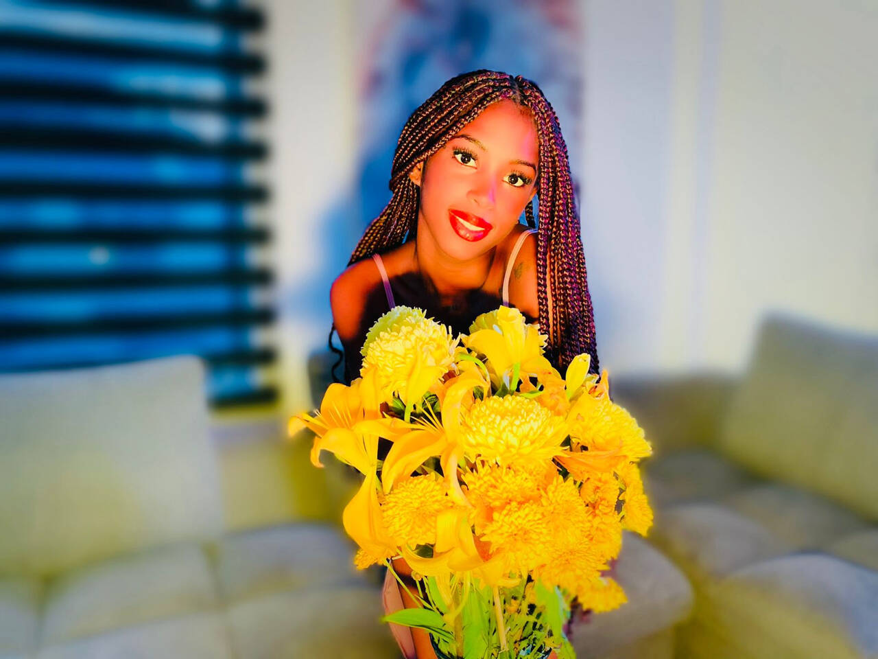My lips, my caresses, will make your wishes come true.